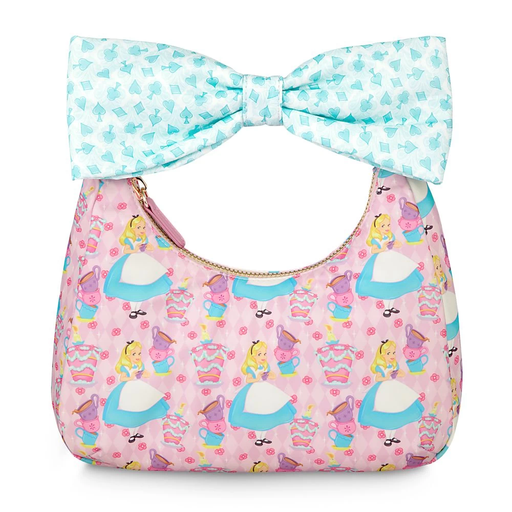 Jump into spring with a must-have accessory that really takes the cake. The Alice in Wonderland mini bow bag by Stoney Clover Lane is topped with a pretty bow bedecked in a print of hearts, diamonds, clubs and spades. Theย allover print features Alice amidst towering tea cups and unbirthday cakes, making this handbag unbelievably charming.