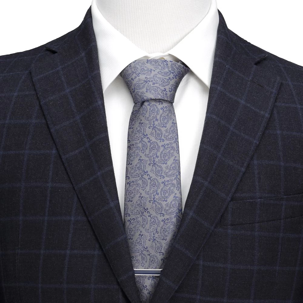 - Silk necktie has paisley design featuring Donald