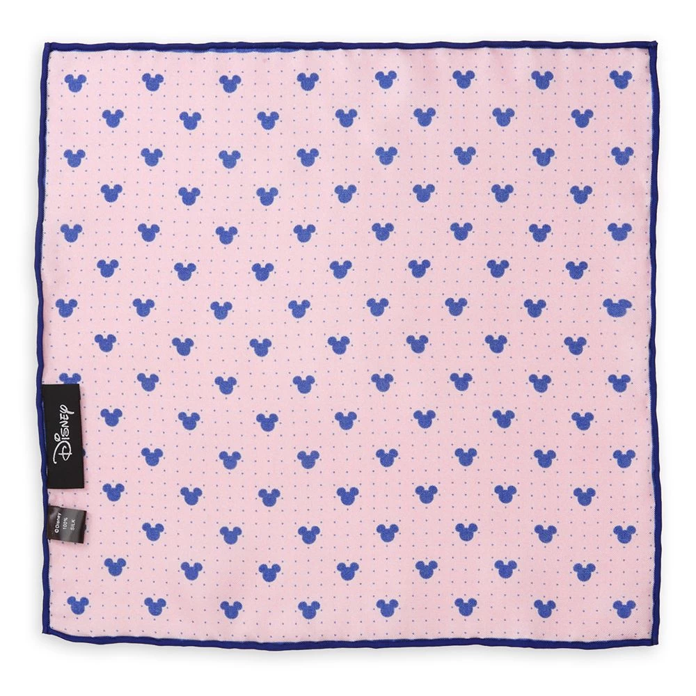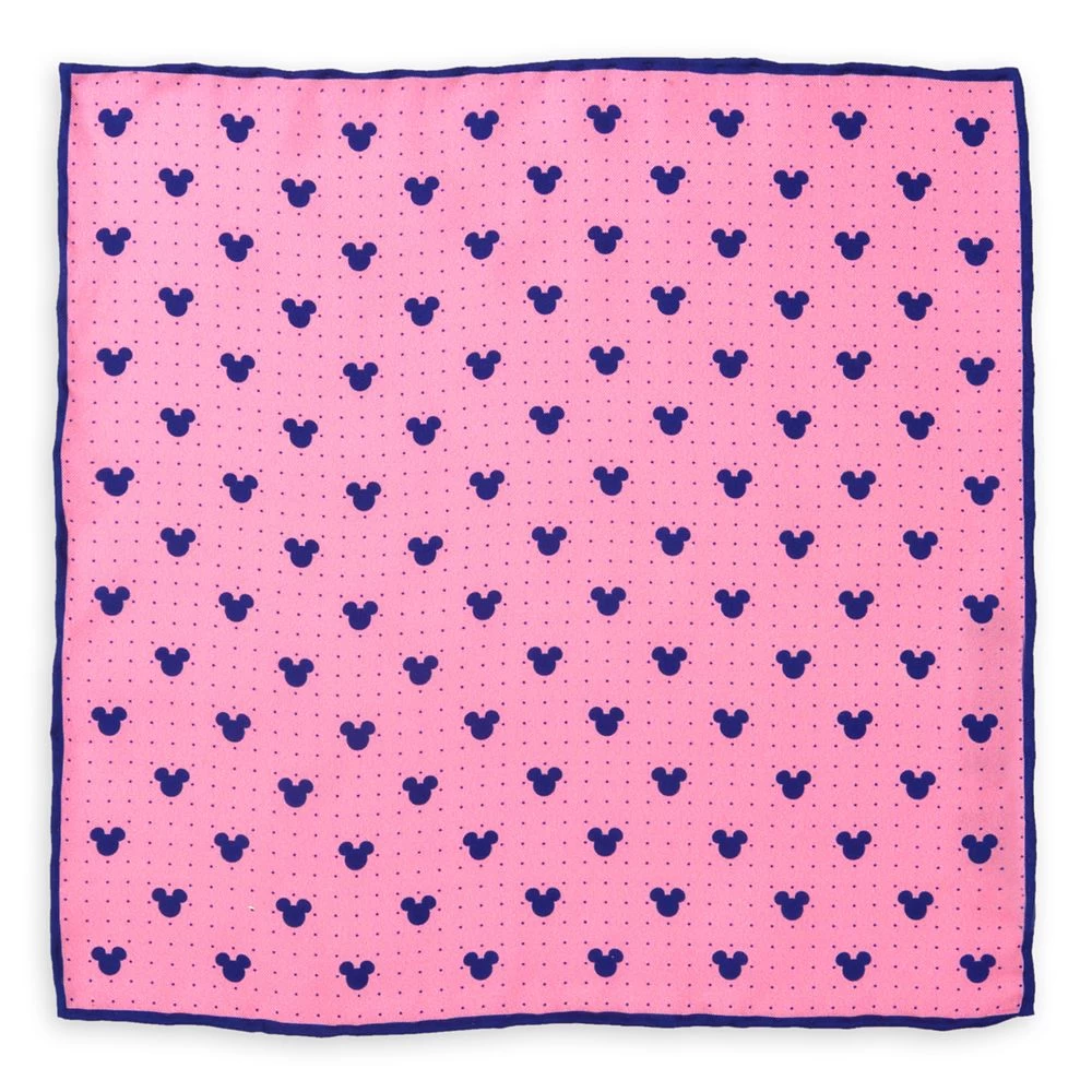 Give your formal wear a wink and a smile with this elegant Mickey Mouse pocket square. Deep navy Mickey Mouse icons and pin dots have been set against a rich pink backgroundΒ and trimmed with navy edging to complete the look.