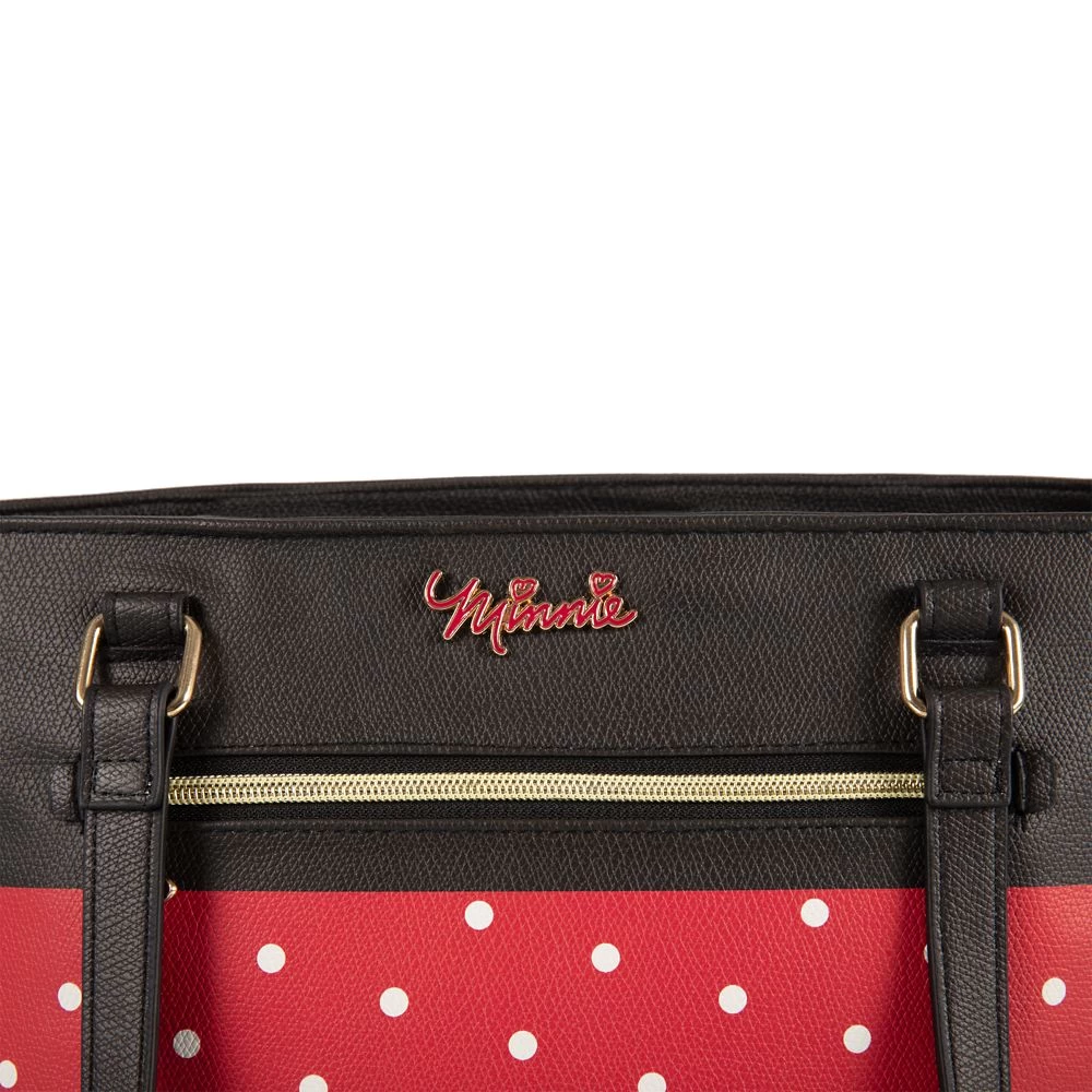 This Minnie Mouse cooler bag is the perfect accessory for every picnic, beach trip or just carrying your lunch. The carry all is made of faux leather and features a fully insulated interior, goldtone hardware, two carrying straps and zipper pocket with polka dot pattern.