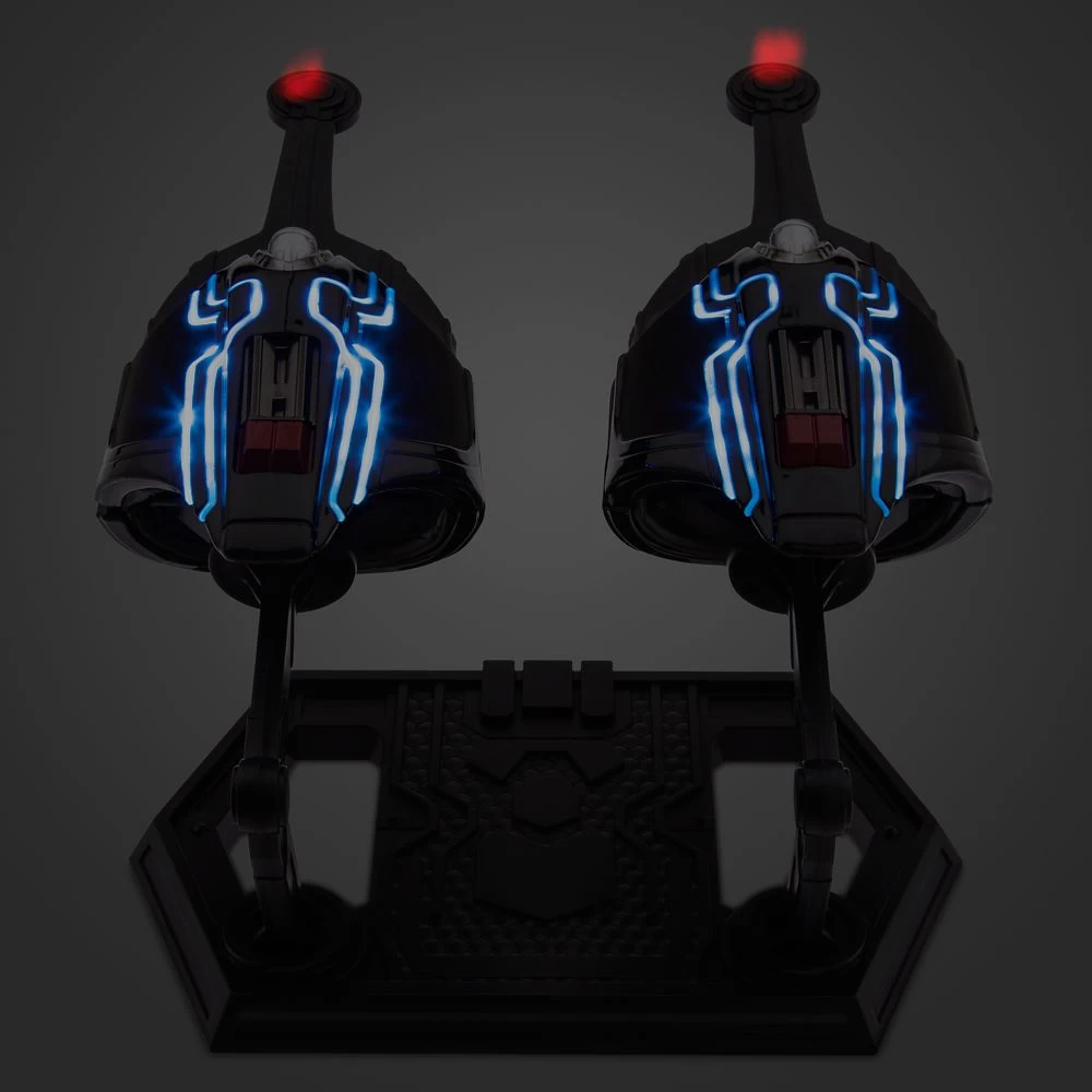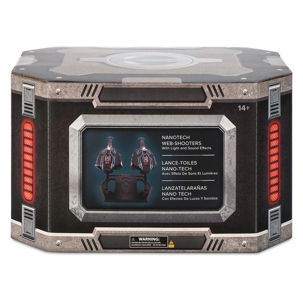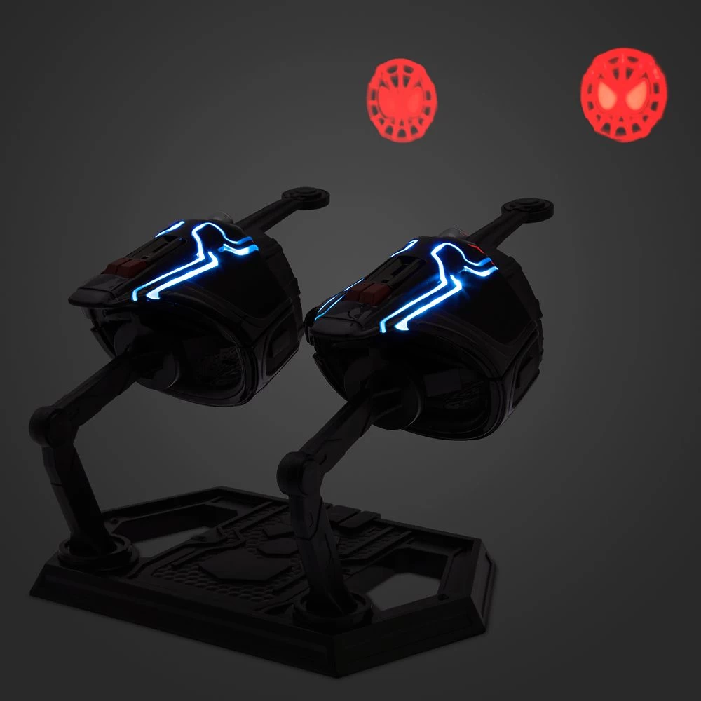 Equip your Spider-Man with the very latest gadget in the form of this pair of Nanotech Web-Shooters. The sturdy and detailed replica wrist guards feature light-up elements with sound effects, plus they project Spider-Man symbols onto any surface. In addition, the two web-shooters can be attached to the included stand.