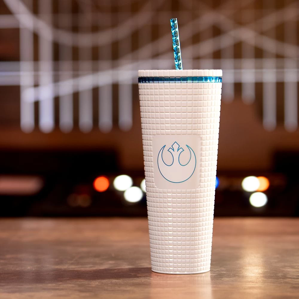Show your allegiance with this Star Wars tumbler from Starbucks® that’s definitely on the light side. The raised geometric design of this white acrylic drinkware features the Alliance Starbird symbol on one side. Refresh your rebellious nature with every sip from the blue translucent reusable straw!