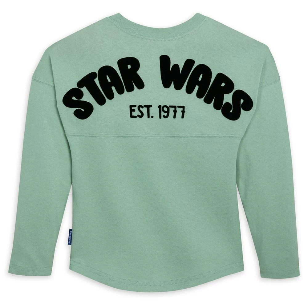- Star Wars logo and ”EST 1977” velvet appliqué across back shoulder