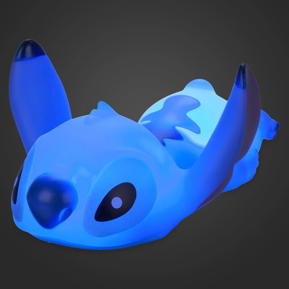 Stitch is all aglow just being near you. With a simple tap, Experiment 626 emits a cool blue and white light that’s perfect to use as a night light or mood lighting to snack by. With another tap the glow turns off but Stitch looks just as cute and chilled as ever.