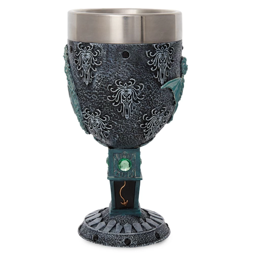Based on the delightfully deathless Haunted Mansion attraction at Disney Theme Parks, this decorative sculpted goblet with stainless steel insert is bejeweled with green and black faux gemstones. To life!Β