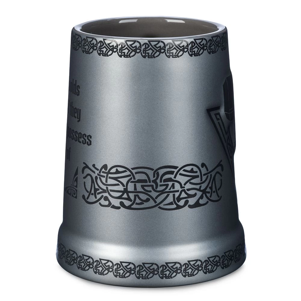 You’ll possess ”the power of Thor” when you drink from this mighty mug featuring the Norse God of Thunder’s fabled Mjolnir. The iconic hammer is featured in the raised design on this ceramic tankard with its pewter glaze. Decorative motifs and a quote explaining Mjolnir’s powers add to the cup’s strengths.