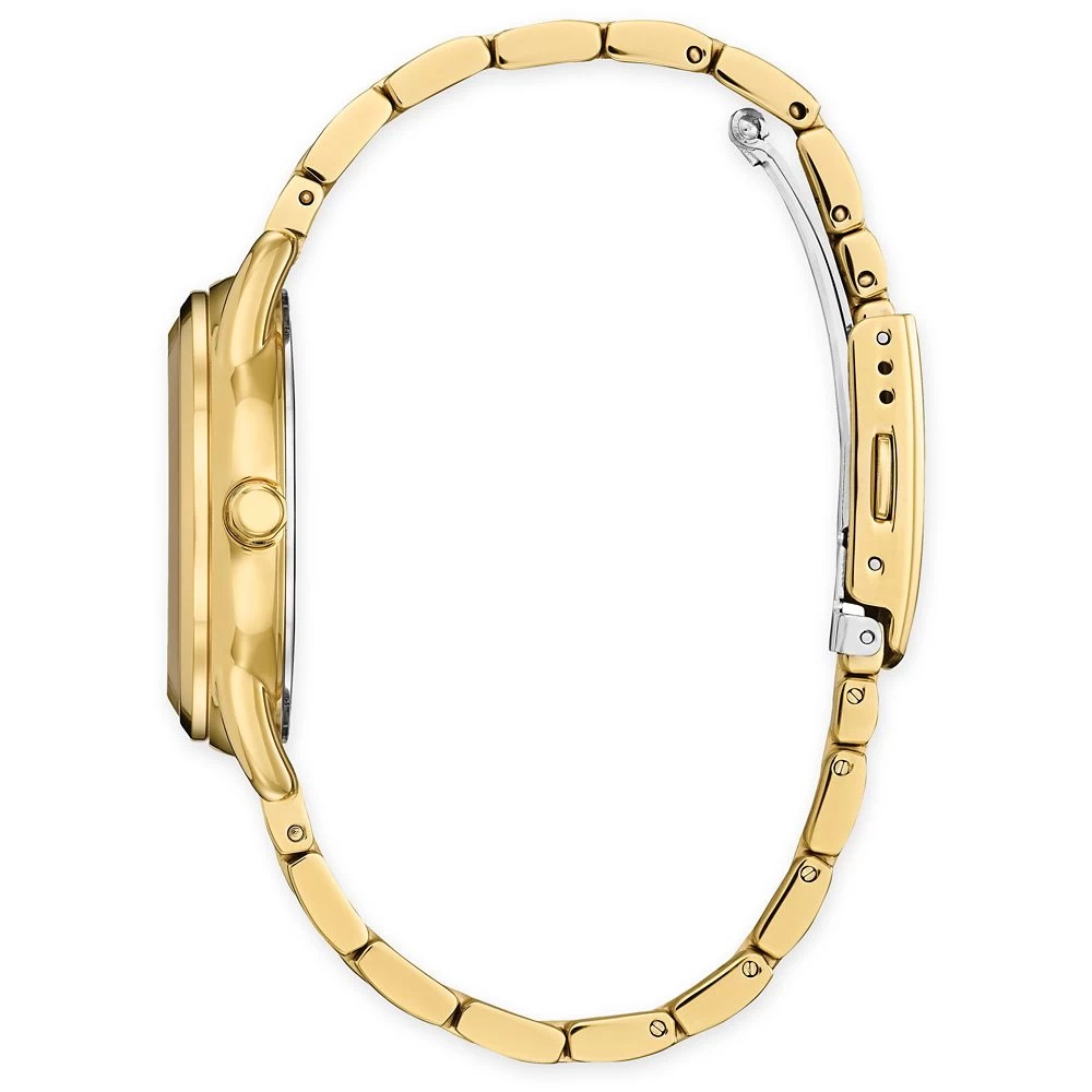 This Disney store exclusive Winnie The Pooh watch by Citizen, featuring a brilliant goldtone stainless steel case and bracelet with a black dial, is a real ”hunny.” Front and center is the ever-hungry Pooh with his pot of golden delights. Featuring Citizen’s signature Eco-Drive technology–powered by light, any light–this watch never needs a battery… No bother!