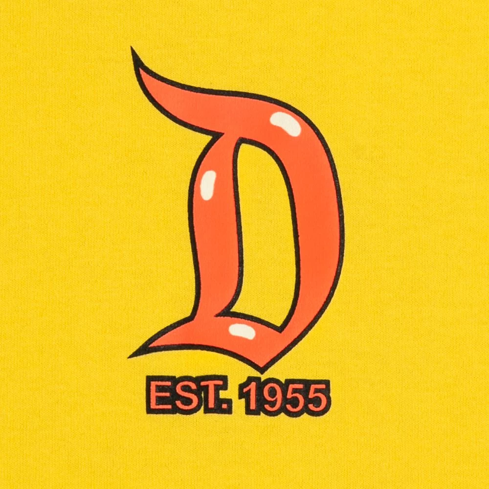 - Puffy ink ”D” icon on chest with ”Est. 1955” text