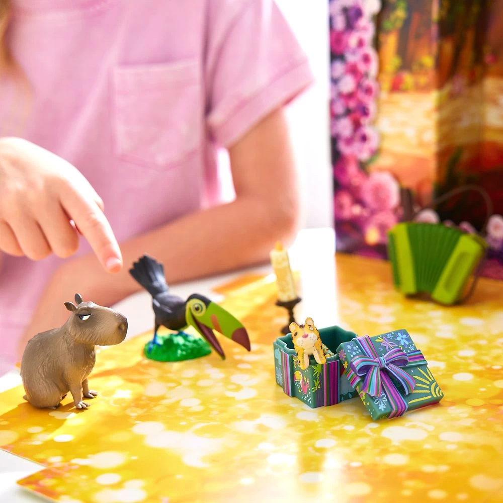 - Accessories include accordion, gift box, candle, toy jaguar, plus Pico and Chispi figures